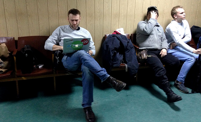 — За последний год к административной ответственности не привлекался, чист как стекло, — сообщил перед началом заседания Навальный, уточнив также, что он «женат, трижды судим».