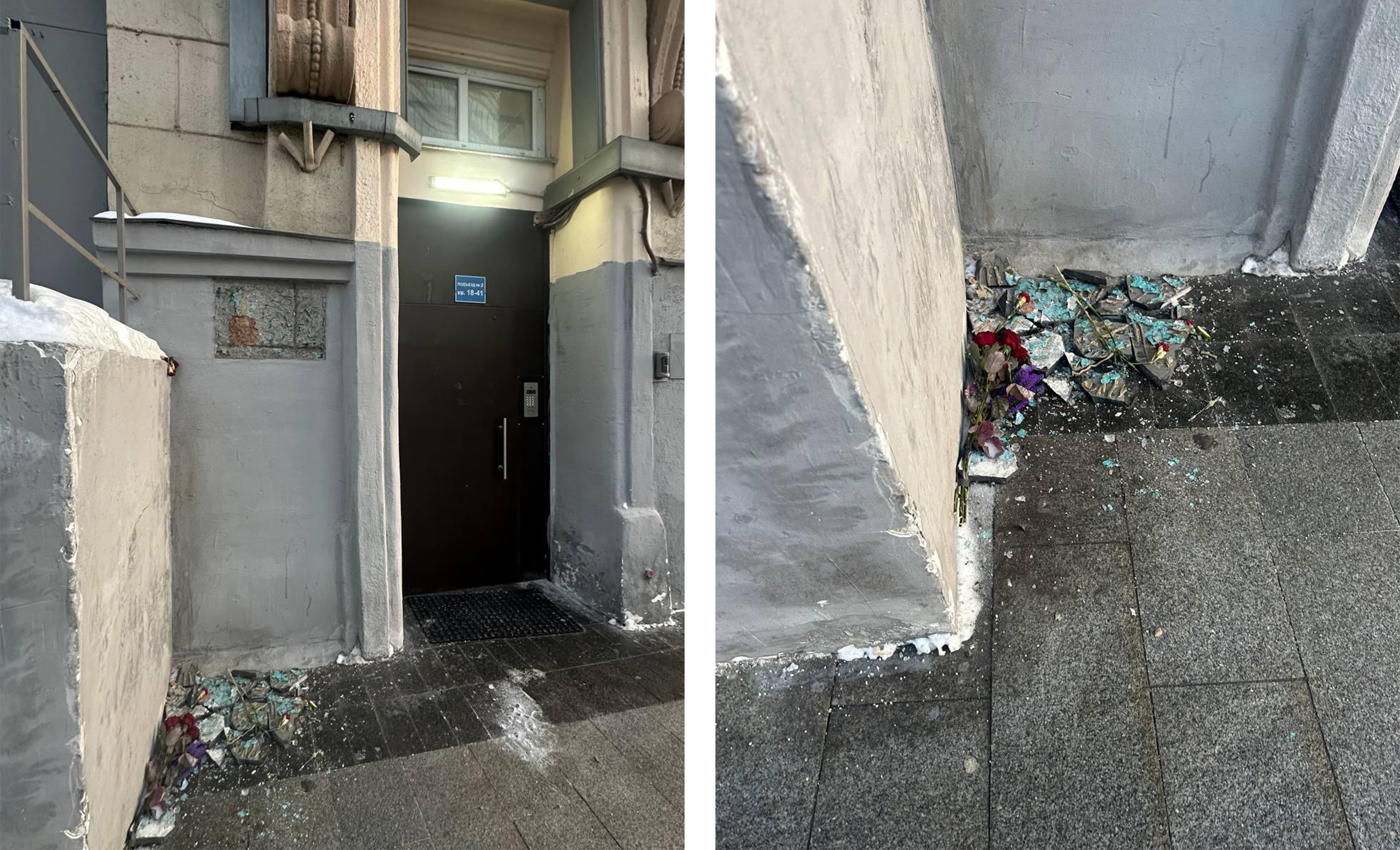 «Она сказала, что лично ничего против таблички не имеет, но мы занимаемся вандализмом. Поэтому она, скажем так, не хотела бы, чтобы табличка снова появлялась. В общем, она угрожала вызвать полицию», — рассказал «Медиазоне» анонимный представитель «Гражданской инициативы», активисты которой продолжают вешать памятные доски на фасаде взамен уничтоженных.