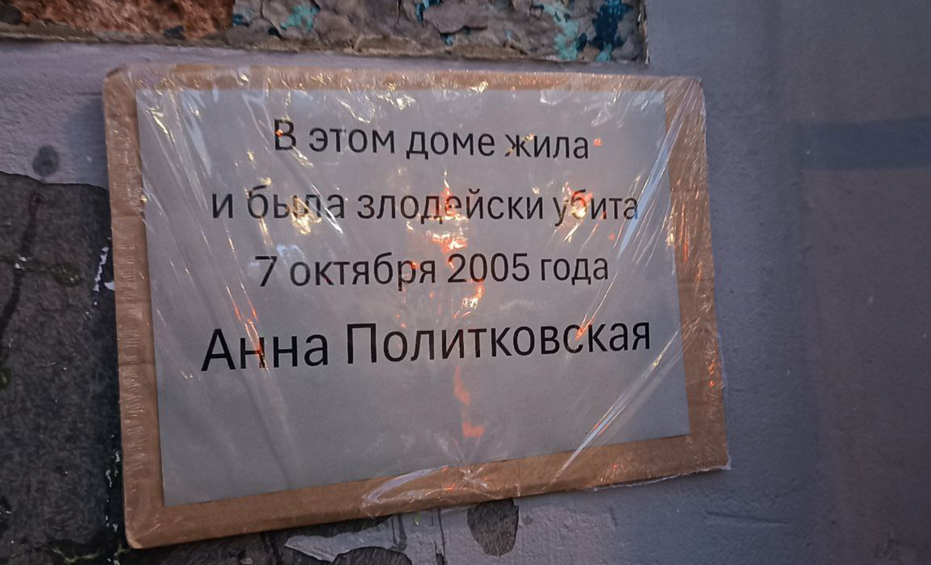 Сейчас согласованная с властями мемориальная табличка Политковской висит на здании редакции «Новой газеты» в Потаповском переулке, ее открыли спустя семь лет после убийства журналистки.