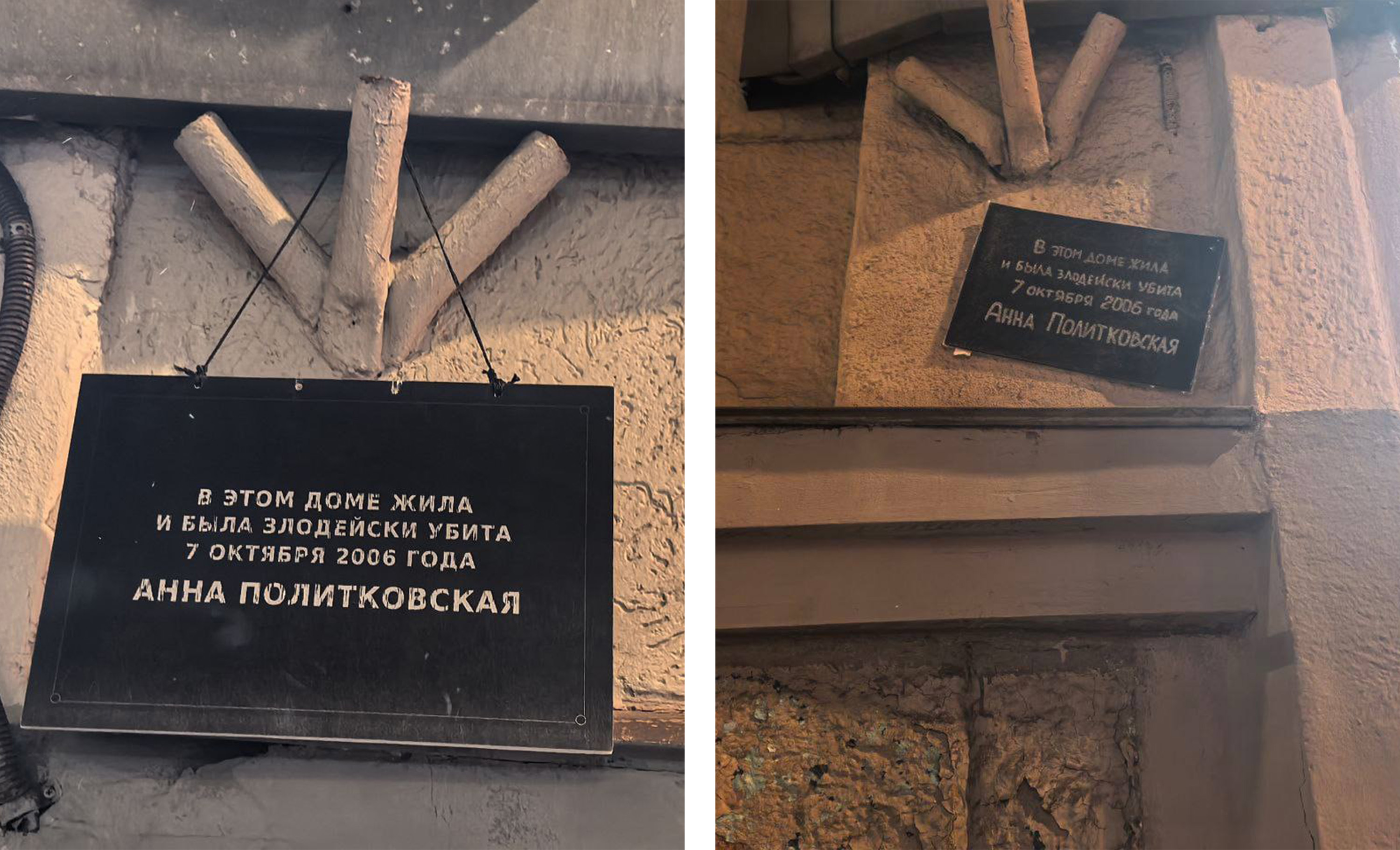 Памятную табличку на доме Анны Политковской повесили и сорвали в седьмой раз. Фото: RusNews, «Осторожно, новости»