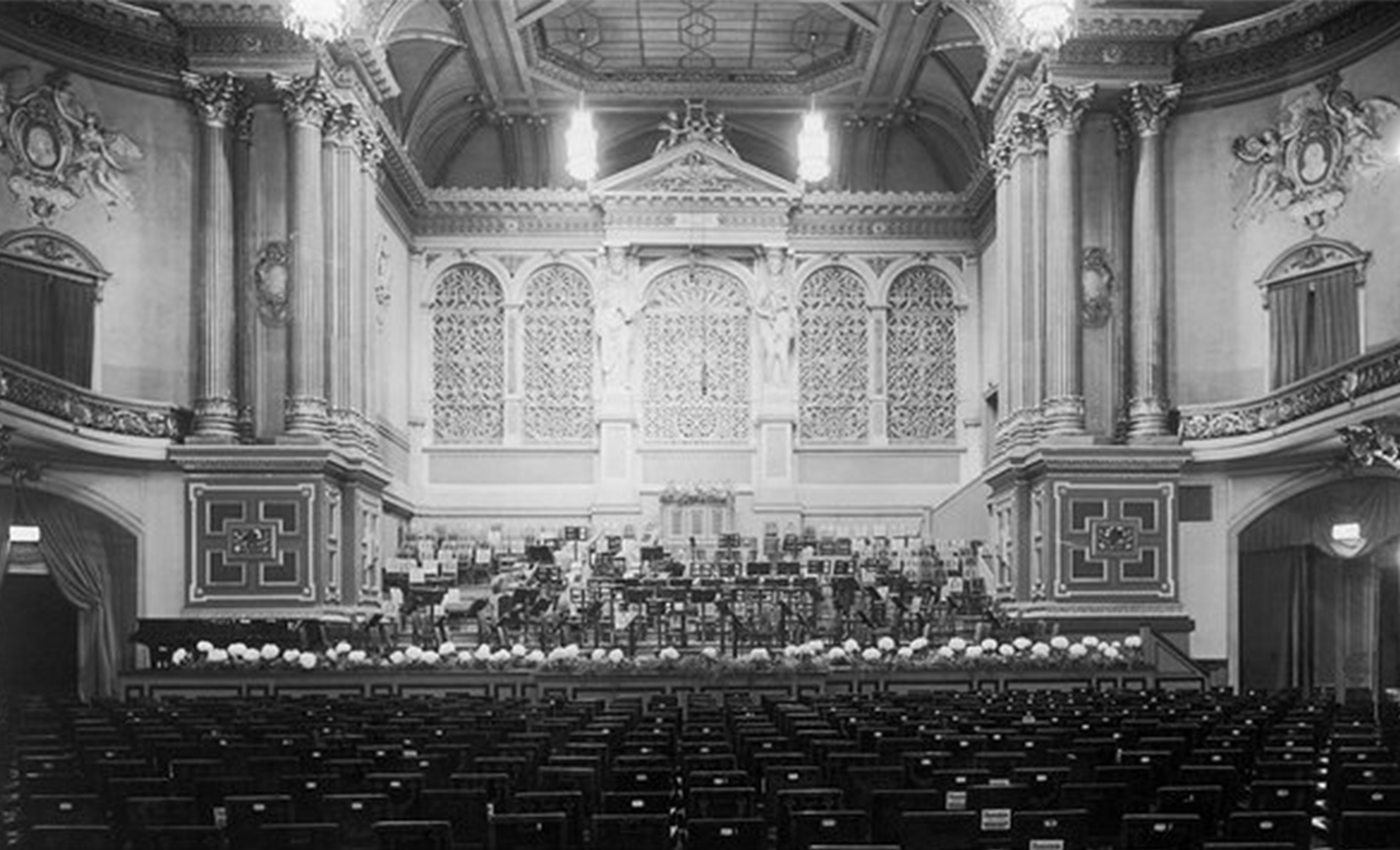 И вот мы приехали. Вход в филармонию. […] Мы шли по длинному коридору. Через открытую дверь я мельком увидел залу, где произошло это. Одни стулья стояли криво, другие были опрокинуты. Напоминало буревал. Наконец мы вошли в нечто вроде прихожей; там толпились люди, зеленые мундиры полиции. "Я хочу его видеть", — повторяла Мама однозвучным голосом».