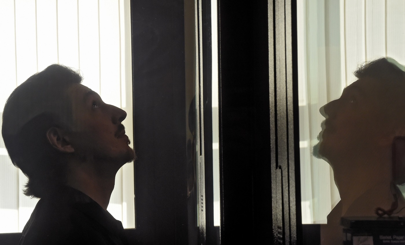 Кирилл Жуков находится в аквариуме, он одет в черную рубашку. Подсудимый ходит по клетке, высоко подняв голову.